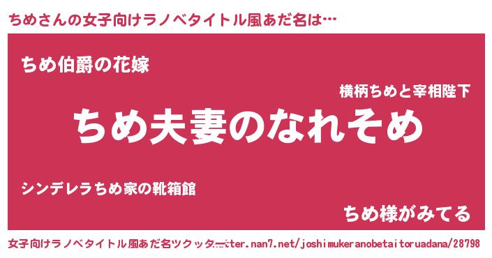 | 男性向けラノベタイトル風あだ名 | 『おまえをオタクにしてやるから、俺をちめにしてくれ! 』 |