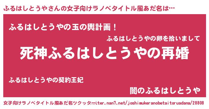 | 男性向けラノベタイトル風あだ名 | 『ノーゲーム・ノーフルハシトウヤ』 |