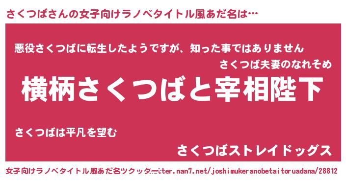 | 男性向けラノベタイトル風あだ名 | 『さくつばに滅ぼされるだけの簡単なお仕事です』 |