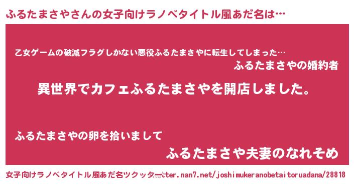 | 男性向けラノベタイトル風あだ名 | 『誰もが恐れるあのふるたまさやが、ぼくの専属メイドになるようです。』 |
