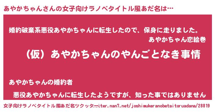 | 男性向けラノベタイトル風あだ名 | 『あやかちゃんの憂鬱』 |