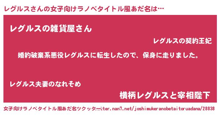 | 男性向けラノベタイトル風あだ名 | 『転生したらレグルスだった件』 |