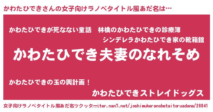 | 胡散臭い通販商品みたいなあだ名 | 『100人中100人が認めたイリジウム磁石…その名も「かわたひでき」』 |