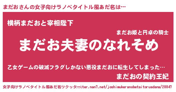 | ヘコむあだ名 | 『まだお(笑)』『まだもー』 |