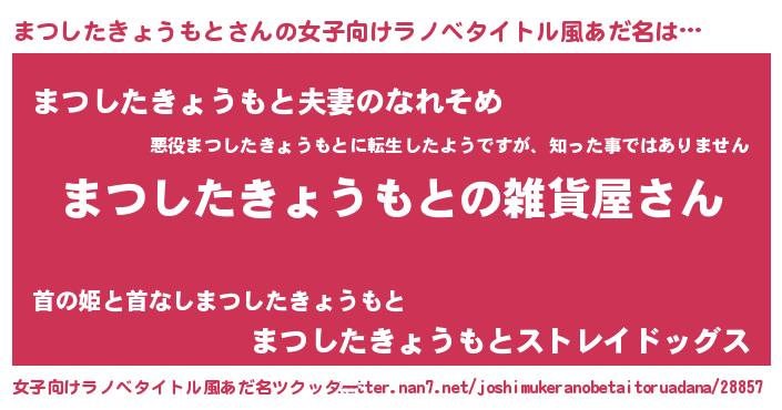 | 男性向けラノベタイトル風あだ名 | 『やはりまつしたきょうもとの青春ラブコメはまちがっている 』 |