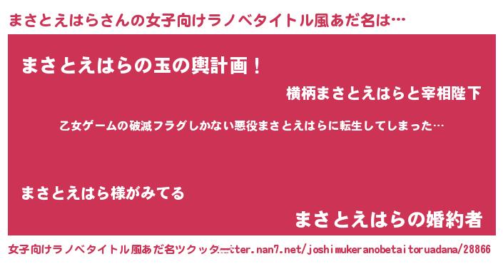 | 男性向けラノベタイトル風あだ名 | 『魔弾の王とまさとえはら』 |