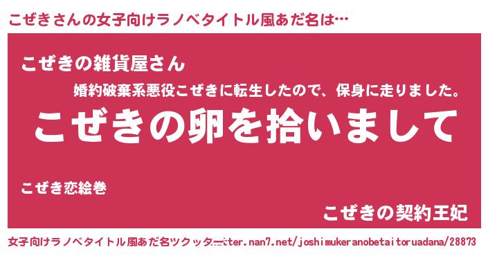 | 意味不明あだ名 | 『とにかく怪しいこぜき』 |