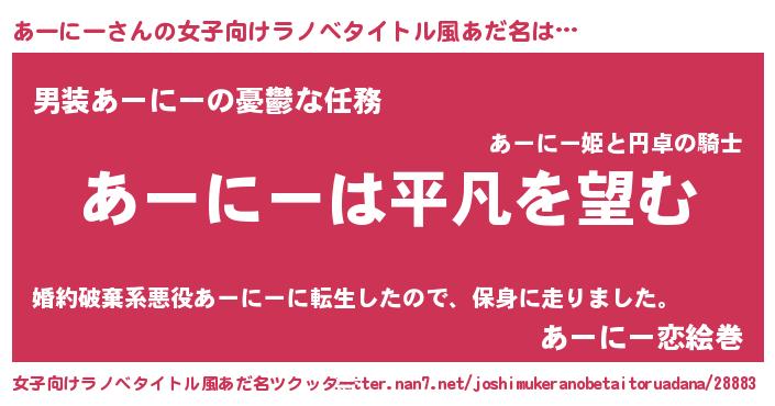 | 胡散臭い通販商品みたいなあだ名 | 『信頼と実績のペンダント…その名も「あーにー」』 |