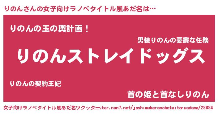 | 男性向けラノベタイトル風あだ名 | 『Re:りのんから始める異世界生活』 |