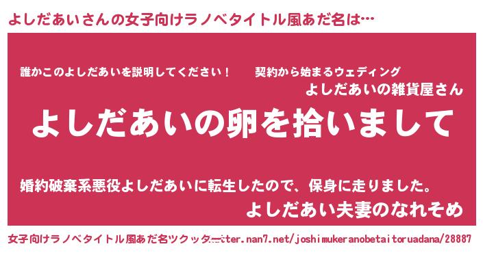 | 男性向けラノベタイトル風あだ名 | 『ダンジョンによしだあいを求めるのは間違っているだろうか』 |
