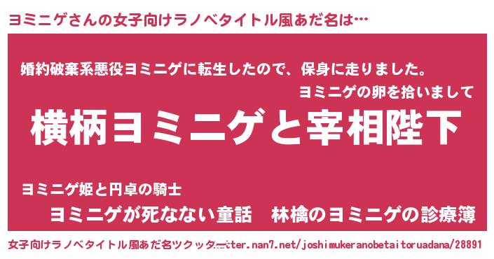 | 胡散臭い通販商品みたいなあだ名 | 『あなたにだけ特別に提供する100年もののヴィンテージワイン…その名も「ヨミニゲ」』 |
