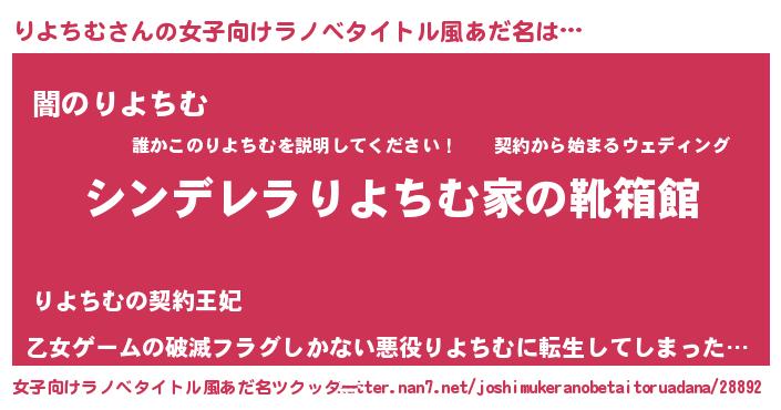 | 胡散臭い通販商品みたいなあだ名 | 『ガンによく効く高麗人参…その名も「りよちむ」』 |