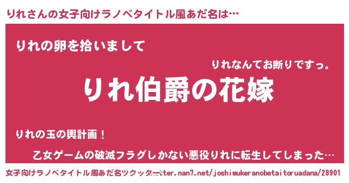 | 男性向けラノベタイトル風あだ名 | 『うちの娘の為ならば、俺はもしかしたらりれも倒せるかもしれない。』 |