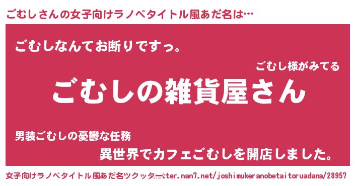 | 男性向けラノベタイトル風あだ名 | 『やはりごむしの青春ラブコメはまちがっている 』 |