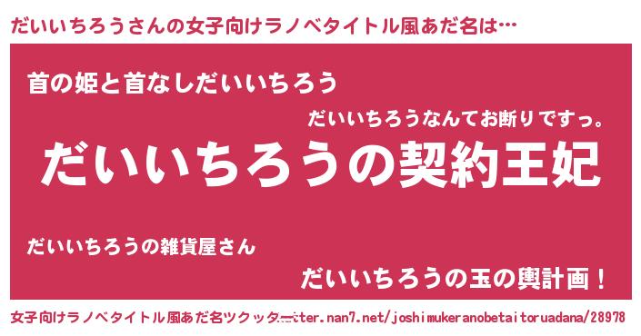 | 男性向けラノベタイトル風あだ名 | 『誰もが恐れるあのだいいちろうが、ぼくの専属メイドになるようです。』 |