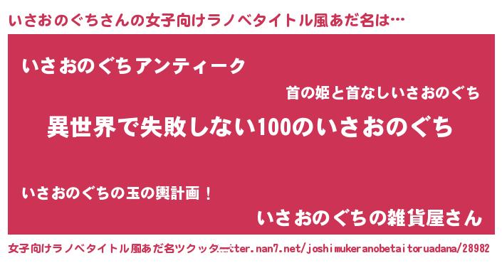 | 男性向けラノベタイトル風あだ名 | 『いさおのぐちという概念が存在しない退屈な世界 』 |