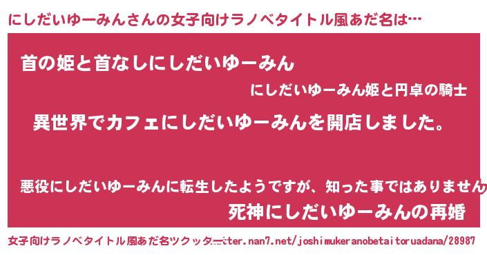 | 意味不明あだ名 | 『永久保存にしだいゆーみん』 |