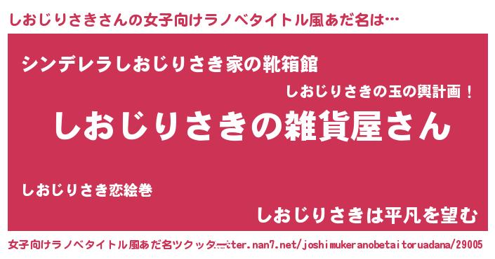 | 男性向けラノベタイトル風あだ名 | 『やはりしおじりさきの青春ラブコメはまちがっている 』 |