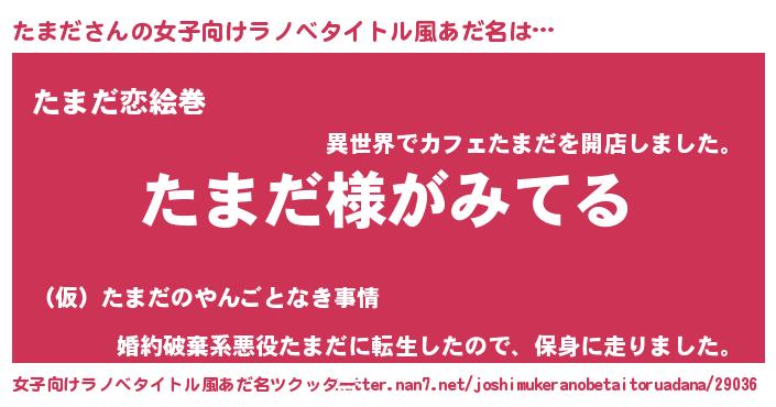 | 胡散臭い通販商品みたいなあだ名 | 『全米が絶賛したサプリメント…その名も「たまだ」』 |