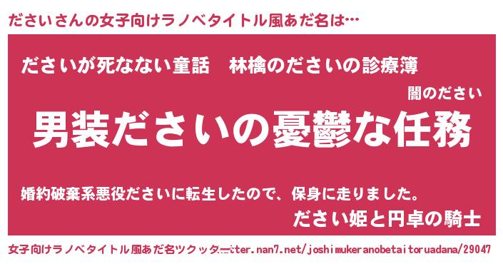 | 胡散臭い通販商品みたいなあだ名 | 『あなたにだけ特別に提供する限定10本のレアな日本酒…その名も「ださい」』 |