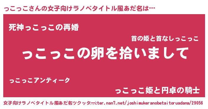 | 男性向けラノベタイトル風あだ名 | 『っこっこの嫁は女の子じゃないと思った?』 |