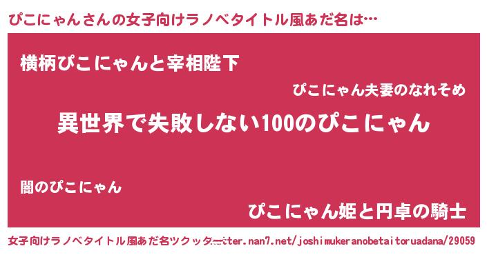 | 男性向けラノベタイトル風あだ名 | 『ぴこにゃんという概念が存在しない退屈な世界 』 |