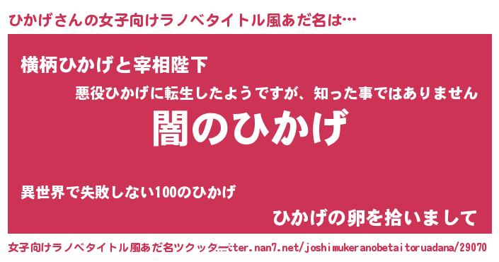| 胡散臭い通販商品みたいなあだ名 | 『テレビで話題のアガリクス…その名も「ひかげ」』 |