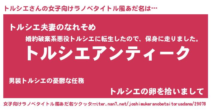 | ヘコむあだ名 | 『トルぷりん』『つくし』『トルもー』 |