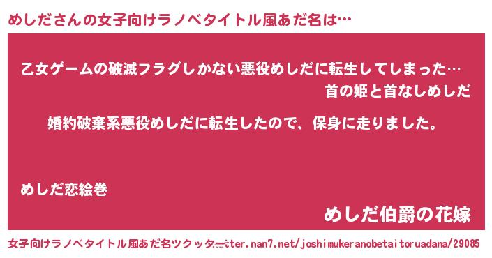 | 男性向けラノベタイトル風あだ名 | 『転生したらめしだだった件』 |