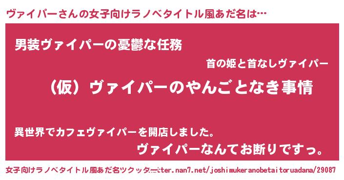 | 男性向けラノベタイトル風あだ名 | 『ヴァイパーの憂鬱』 |