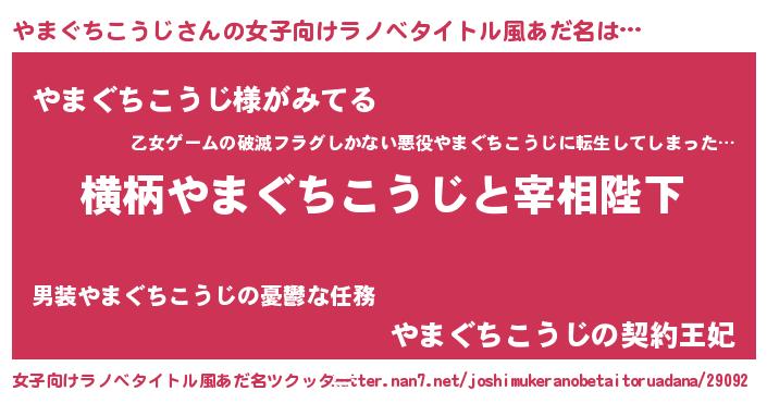 | 男性向けラノベタイトル風あだ名 | 『やまぐちこうじに滅ぼされるだけの簡単なお仕事です』 |