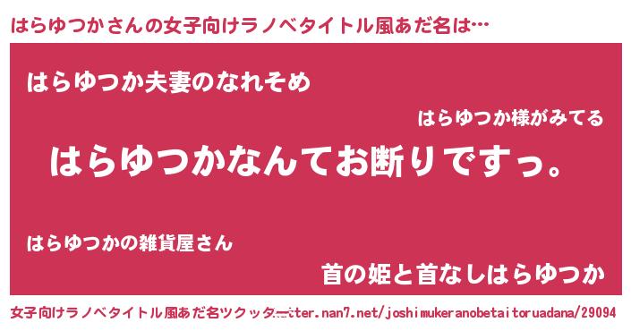 | 意味不明あだ名 | 『自称はらゆつか』 |