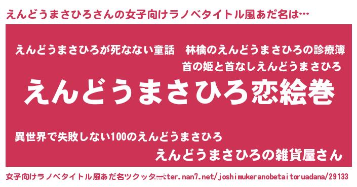 | ヒーロー風カッコイイあだ名 | 『慈愛の使者えんどうまさひろ』 |