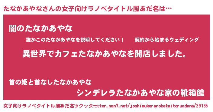 | 肩書あだ名 | 『たなかあやな副担任』『たなかあやなCEO』 |
