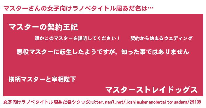 | ヒーロー風カッコイイあだ名 | 『仮面マスダー』『ネオマスター』 |