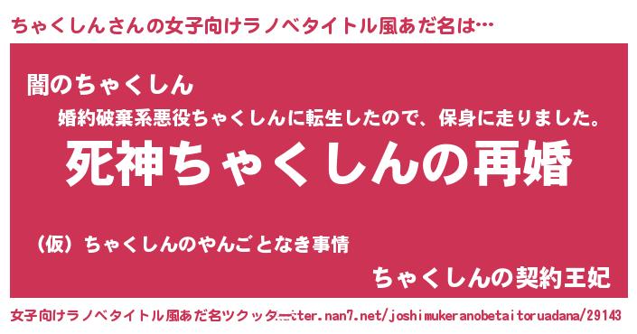 | ヘコむあだ名 | 『ちゃくしん(笑)』『ちゃもー』 |