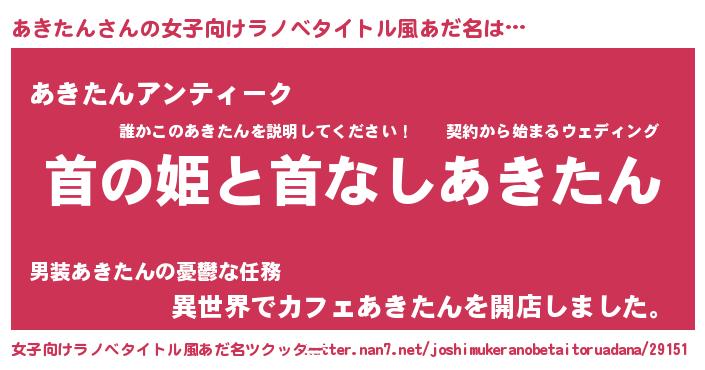 | 胡散臭い通販商品みたいなあだ名 | 『ガンによく効く高麗人参…その名も「あきたん」』 |