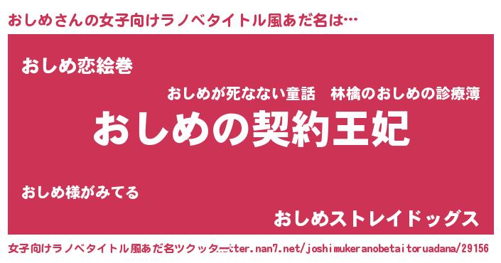 | ヘコむあだ名 | 『おしめ(小並感)』『おしぷりん』 |