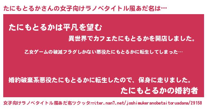 | 胡散臭い通販商品みたいなあだ名 | 『世界中を虜にした世界で10本だけ現存している希少なブランデー…その名も「たにもとるか」』 |