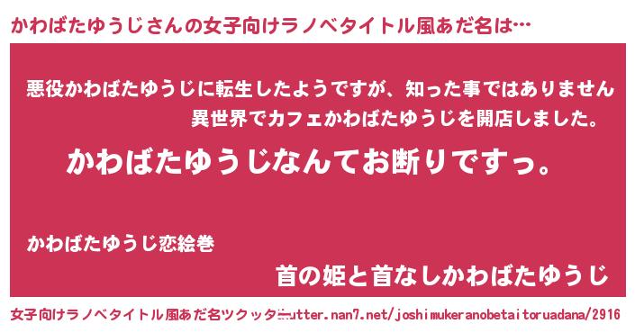 | ヘコむあだ名 | 『かわばたゆうじ(爆)』『かわもー』 |