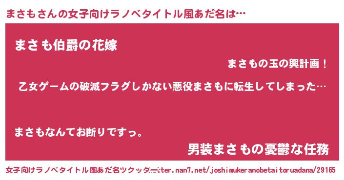 | 意味不明あだ名 | 『住所不定無職まさも(85歳)』『自称まさも』 |