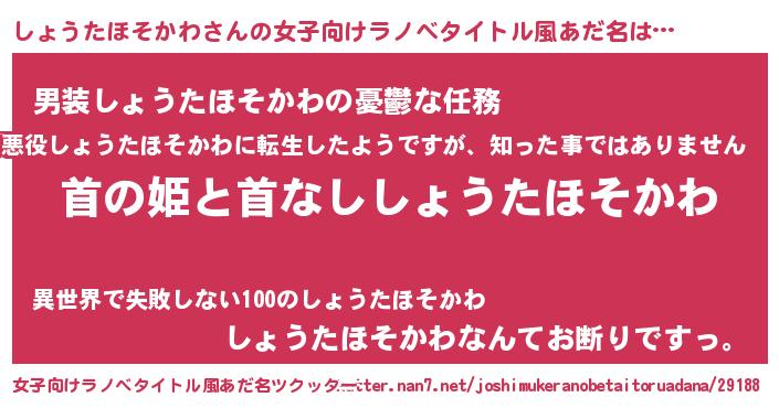 | 意味不明あだ名 | 『自称しょうたほそかわ』 |