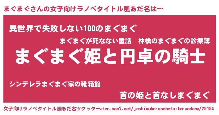 | 胡散臭い通販商品みたいなあだ名 | 『モテモテ間違いなしブレスレット…その名も「まぐまぐ」』 |