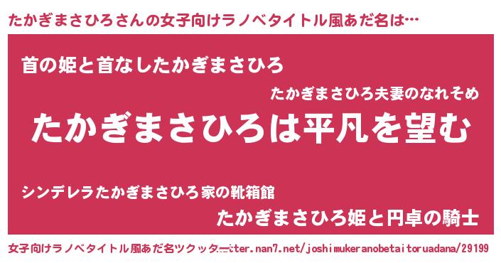 | 男性向けラノベタイトル風あだ名 | 『ダンジョンにたかぎまさひろを求めるのは間違っているだろうか』 |