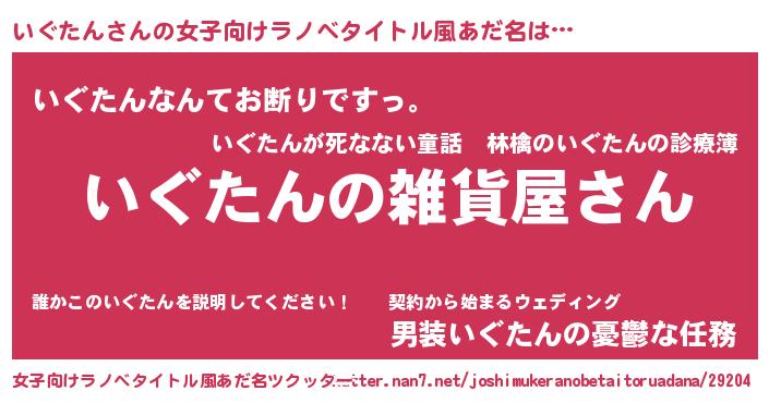| 男性向けラノベタイトル風あだ名 | 『やはりいぐたんの青春ラブコメはまちがっている 』 |