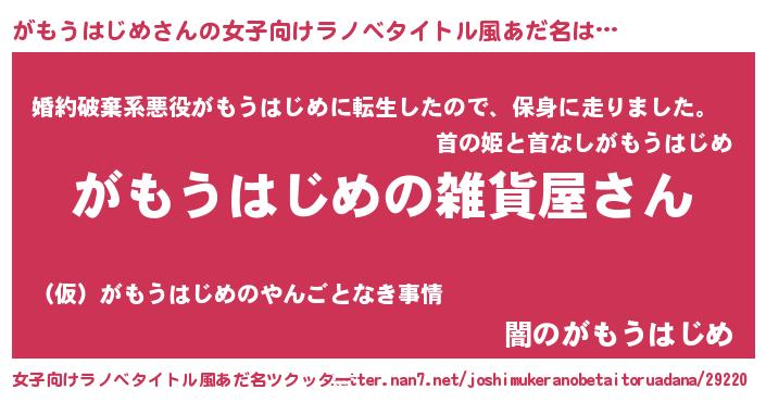 | ファンタジー風あだ名 | 『エターナルガモウハジメー』 |