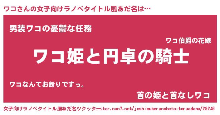 | 胡散臭い通販商品みたいなあだ名 | 『モテモテ間違いなしブレスレット…その名も「ワコ」』 |