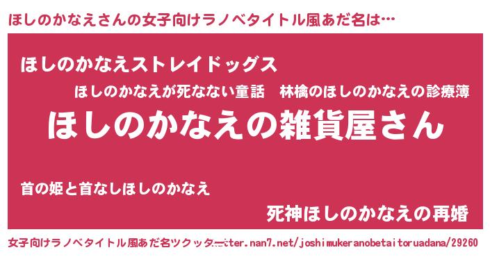 | ファンタジー風あだ名 | 『エターナルホシノカナエー』 |