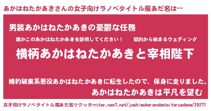 | 欧米人風あだ名 | 『アンジェラ・あかはねたかあき』 |