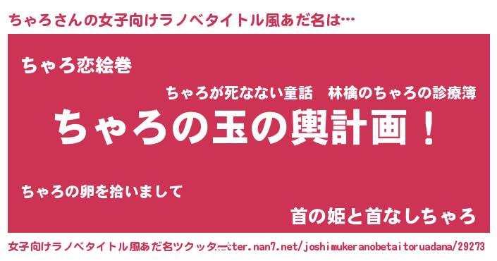 | 意味不明あだ名 | 『ニラ科ちゃろ属』『自称ちゃろ』 |